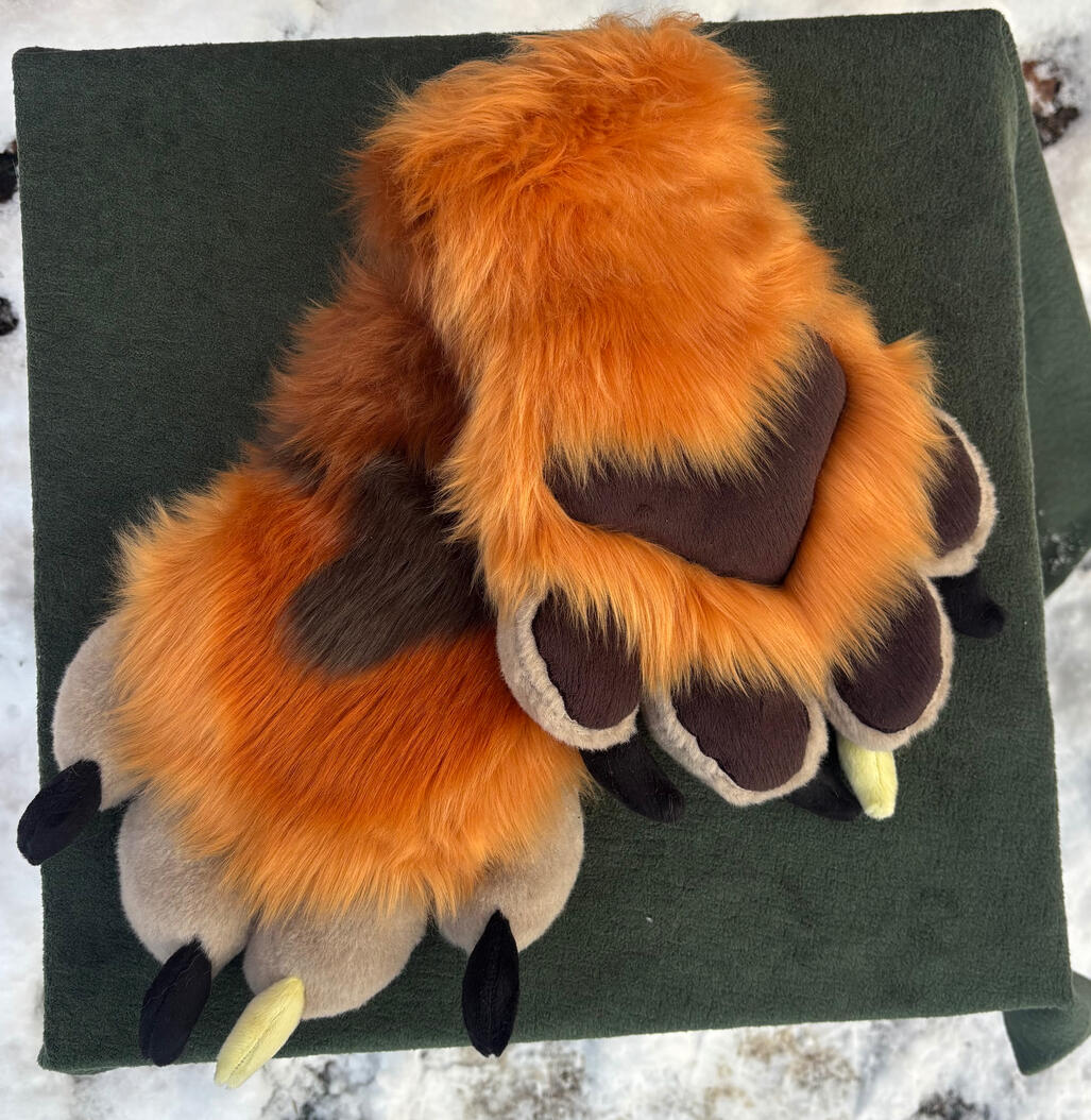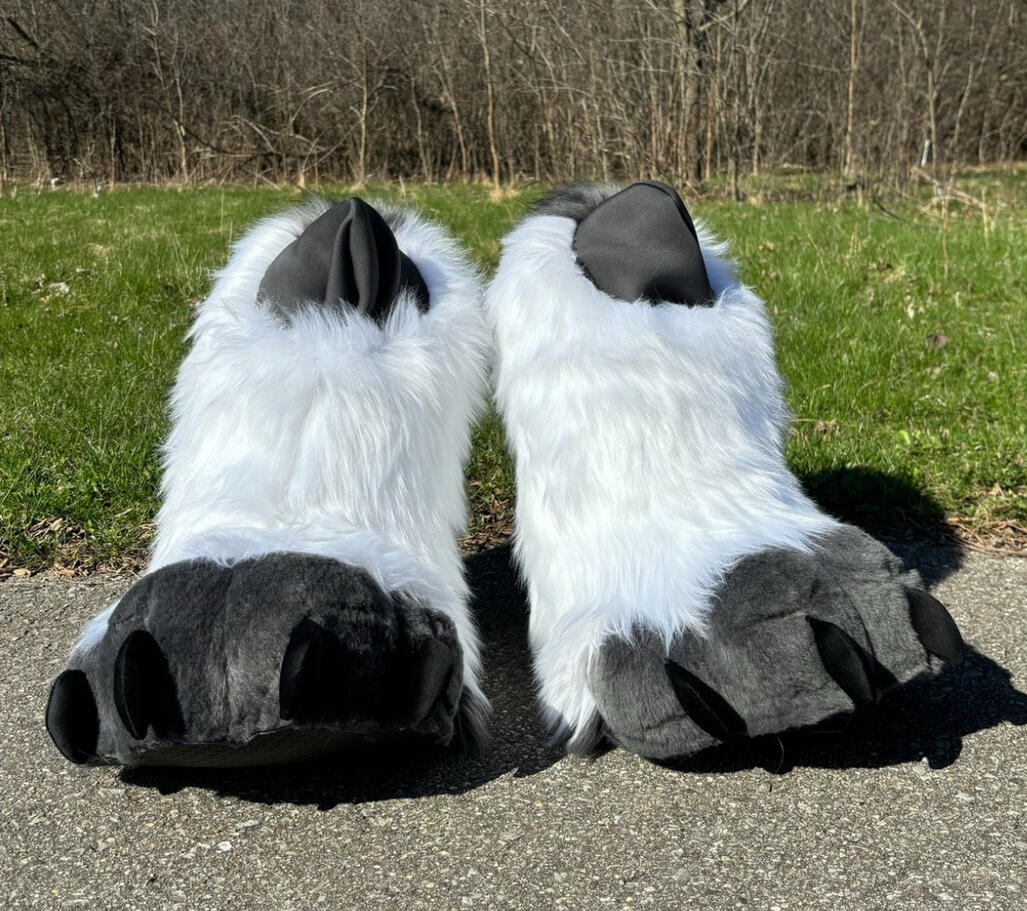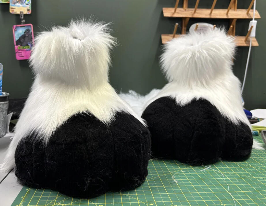 My Feetpaws are made on SpiltGrapeSoda patterns, the customer gets the choice of V1 or V2. They feature a fully lined sock like inside, polyfill stuffed interior, and if chosen, applique paw pads.
