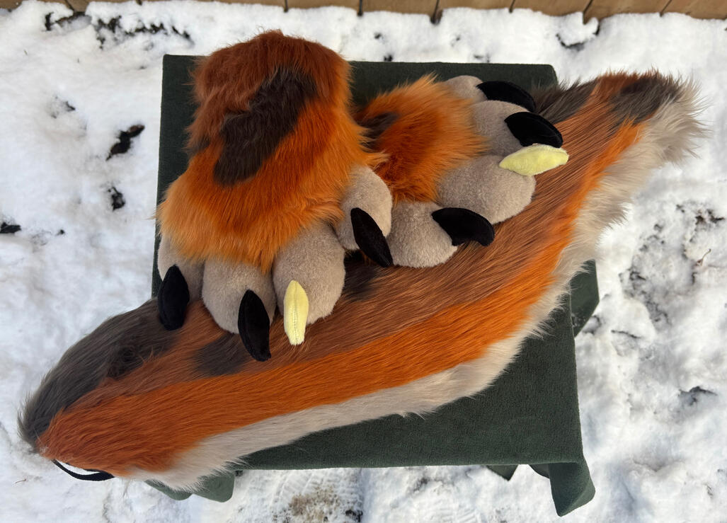 My Feetpaws are made on SpiltGrapeSoda patterns, the customer gets the choice of V1 or V2. They feature a fully lined sock like inside, polyfill stuffed interior, and if chosen, applique paw pads.